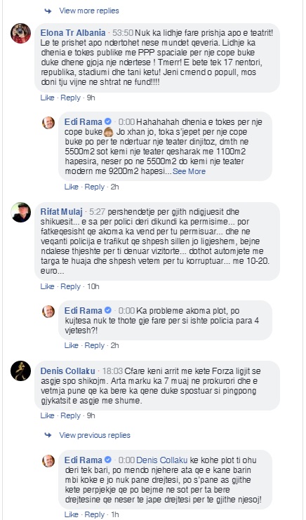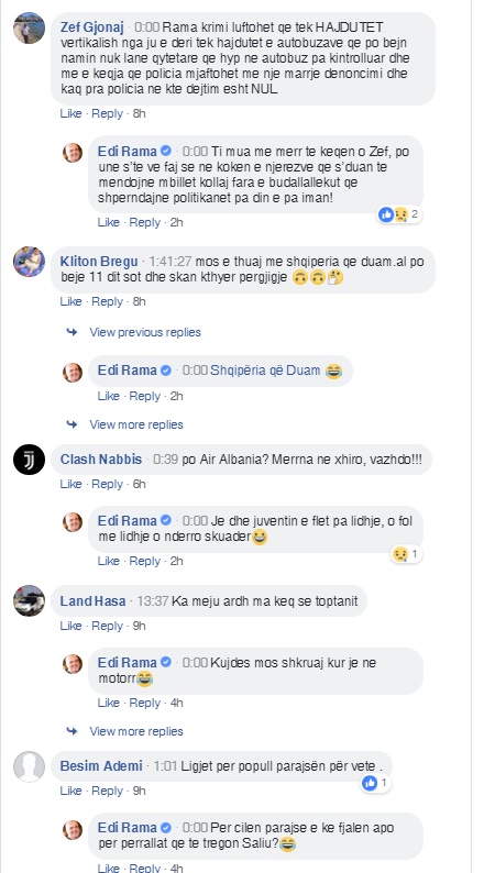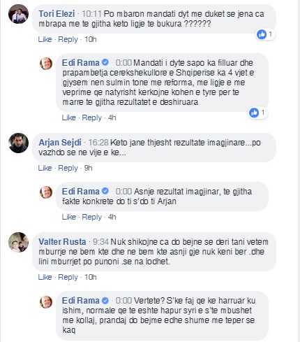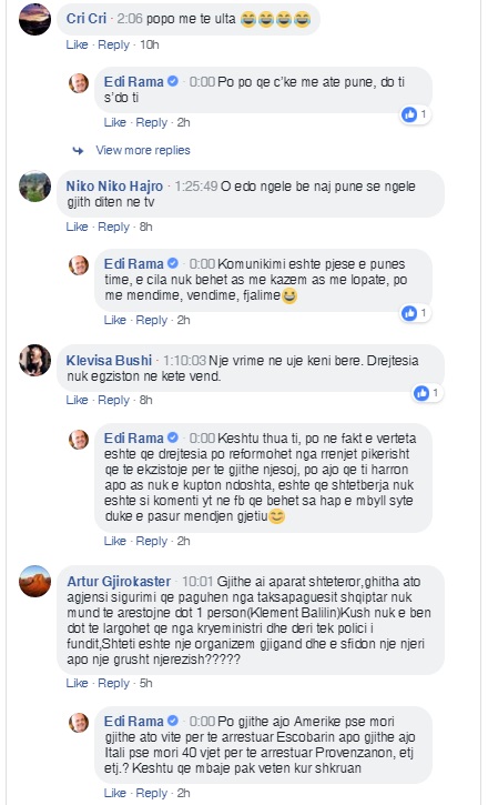 Kryeministri Edi Rama ka debatuar me ndjekësit e tij në rrjet lidhur me reformat e ndërmarra nga qeveria. Kryeministri ka postuar një video mbi operacionin “Forca e Ligjit”, por ndjekësit në rrjet shprehen mosbesues dhe i kosniderojnë suksese imagjinare ato që publikon Rama.