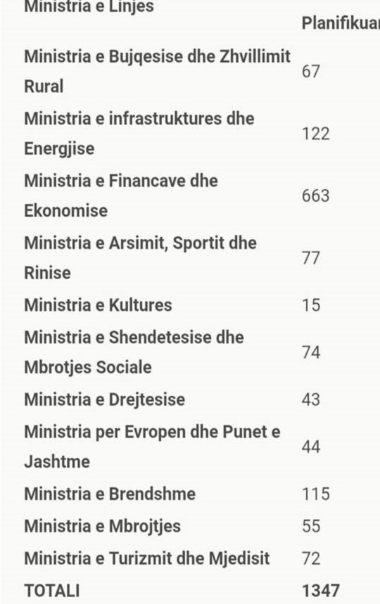 Në të kundërt Ministria e Bujqësisë, ajo e Financave dhe ajo e Punëve të Jashtme kanë realizuar të gjitha produktet e punës.