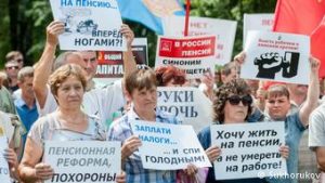 Ligji i planifikuar parasheh ngritjen graduale të moshës së daljes në pension, për gratë nga 55 tani në 63 vjeç, dhe nga 60 në 65 vjeç për burrat. Pensioni mesatar në Rusi është më pak se 200 euro.