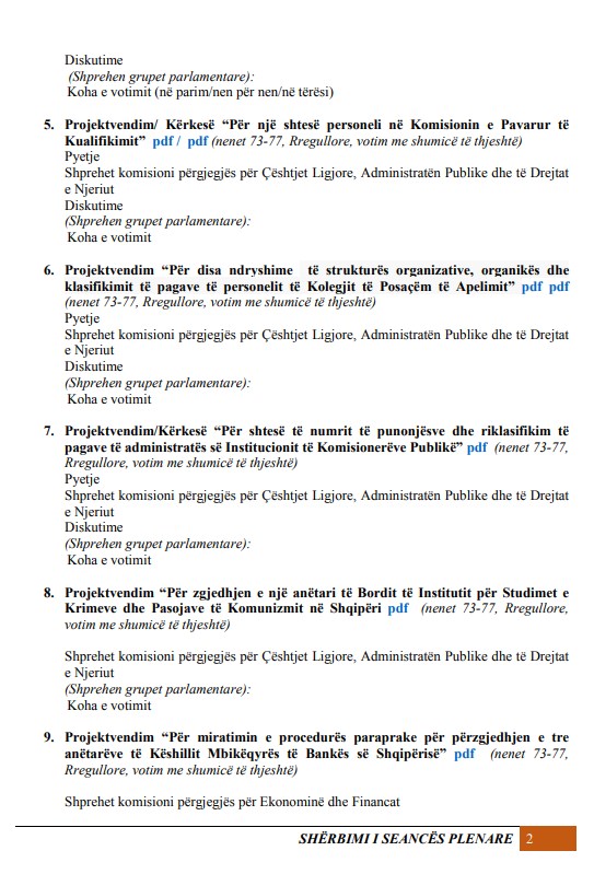 Mungesën e Opozitës mazhoranca po e shfrytëzon edhe për “Për zgjedhjen e një anëtari të Bordit të Institutit për Studimet e Krimeve dhe Pasojave të Komunizmit në Shqipëri”, si Pikë e 8. e rendit të ditës,  dhe atë që Edi Rama bëhej sikur është i painteresuar, Projektvendimin “Për miratimin e procedurës paraprake për përzgjedhjen e tre anëtarëve të Këshillit Mbikëqyrës të Bankës së Shqipërisë”, që është dhe Pika 9. e rendit të ditës.