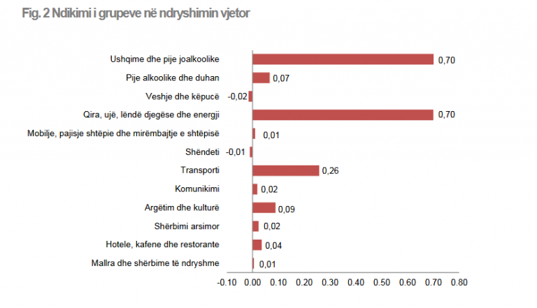 Ndikimi i grupeve kryesore në ndryshimin vjetor të indeksit të çmimeve të konsumit