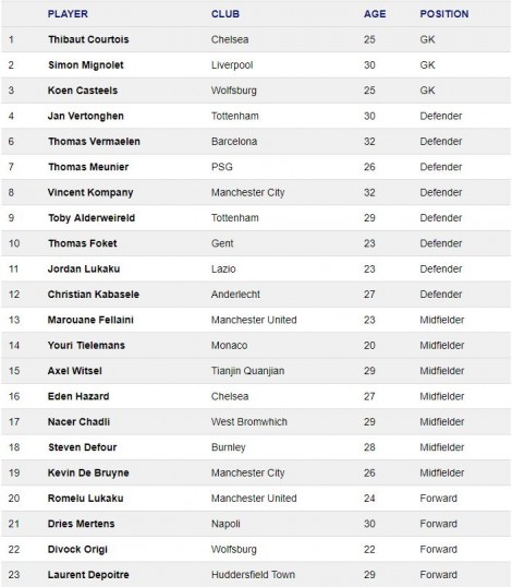 Trajneri i Belgjikës, Marinez, ka publikuar listën paraprake me 28 futbollitë. Ajo që bie në sy është mungesa e mesfushorit të Romës, Raxha Naingolan, i cili nuk është përfshirë në listë nga trajneri dhe ka ngelur jashtë truneut më presigjoz të globit.