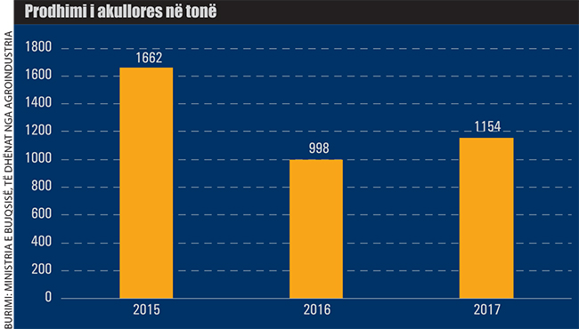 Prodhimi vendas i akullores po njeh një zgjerim të vazhdueshëm në vitet e fundit. Të dhënat nga Ministria e Bujqësisë flasin për rritje të prodhimit të akullores prej agroindustrisë. Gjatë 2017-s prodhimi i akullores në vend ishte 1,154 tonë, me një rritje prej 15% të prodhimit krahasuar me një vit më parë.