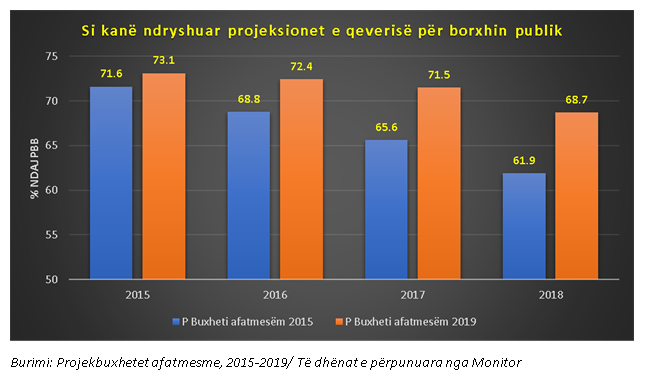 Edhe vetë Shqipëria e ndërmori një sfidë të tillë, teksa në projektbuxhetin afatmesëm të vitit 2015 parashikonte me ambicie që në 2018-n, borxhi publik të ulej në 61.9% të PBB-së.
