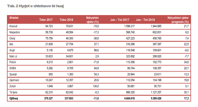 Ndikimin kryesor e kanë dhënë shtetasit nga Kosova, hyrjet e të cilëve ranë me 16% në tetor, ose rreth 15 mijë persona më pak se tetori i një viti më parë.