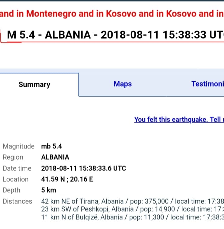 Lëkundjet e tokës janë dëgjuar edhe në Maqedoni, Kosovë dhe Mal të Zi.