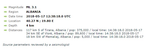 Duke iu referuar Institutit të Gjeoshkencave, tërmeti ka qenë me magnitudë 3.1 dhe ka rënë në një thellësi prej 4 kilometra nën tokë.