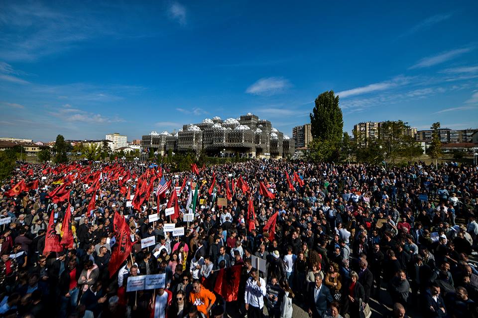 Këto pamje tregojnë se me Thaçin janë vetëm tre persona ndërkohë në protestën e Vetëvendosjes pamjet flasin vetë: