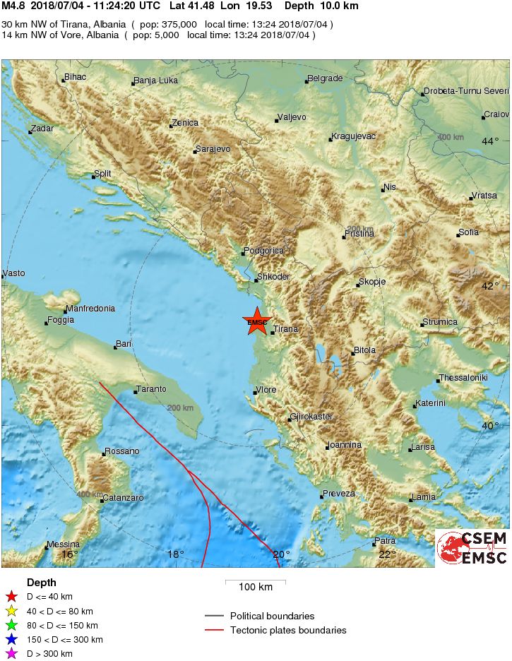 Një tjetër tërmet është regjistruar në territorin shqiptar me magnitudë 4.8.