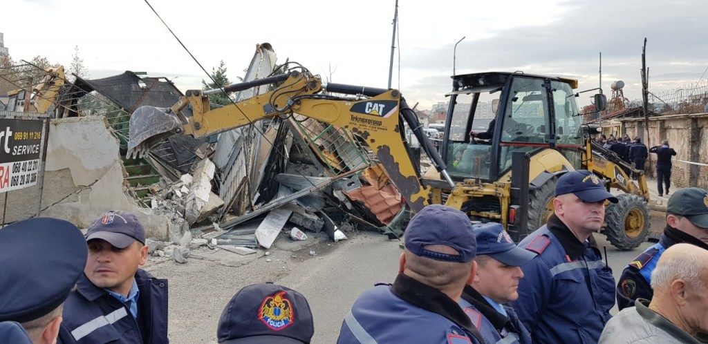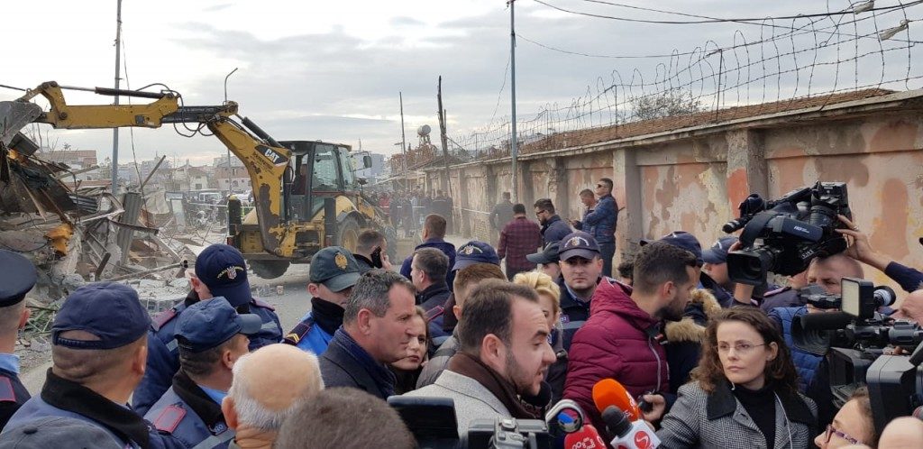 Forcat e policisë nxorrën me forcë banorët që nuk kanë pranuar të dalin nga banesa, ndërkohë kordoni i policisë po përplasej me banorët dhe nga ana tjetër po garantonte shembjen e sigurt nga ana e fadromës së IKMT: