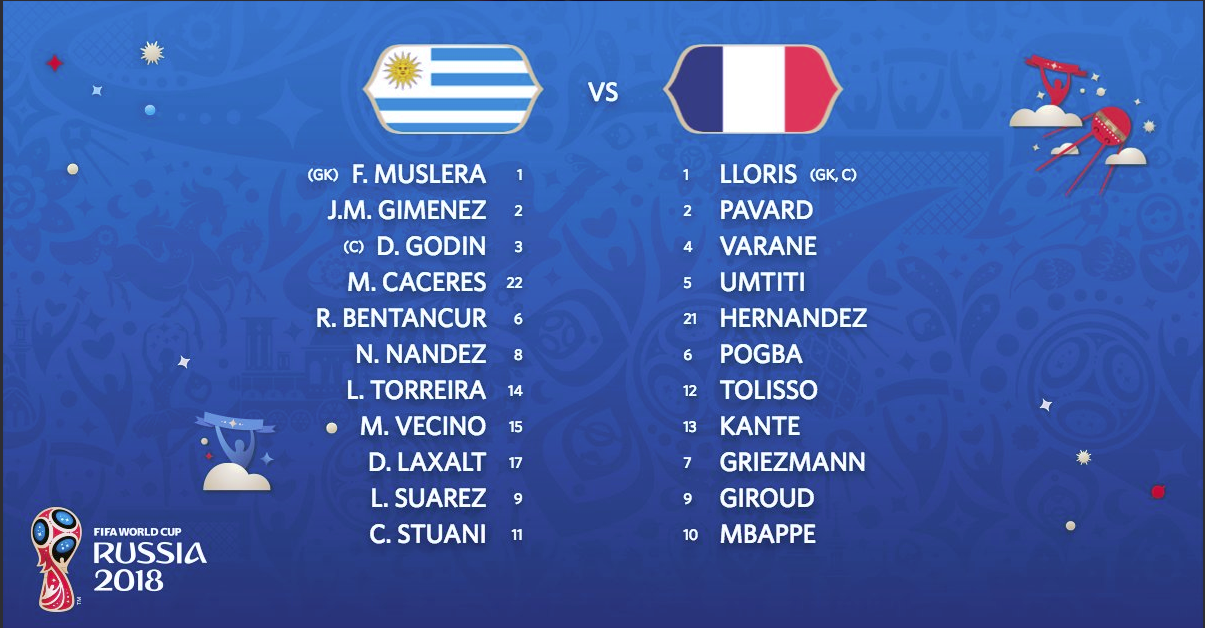 Uruguai ka pësuar vetëm 1 gol deri tani, çka tregon se ka një mbrojtje të fortë. Në anën tjetër Franca do të ketë mungesën e Matuidi, i cili ka plotësuar numrin e kartonëve, ndërkohë Kavani do ta nis nga stoli ashtu siç edhe pritej .