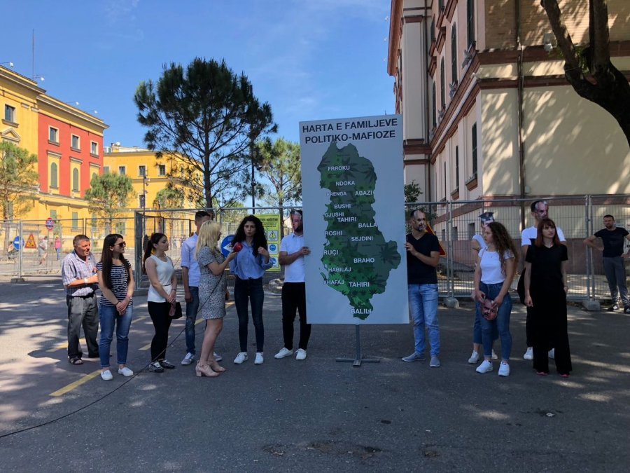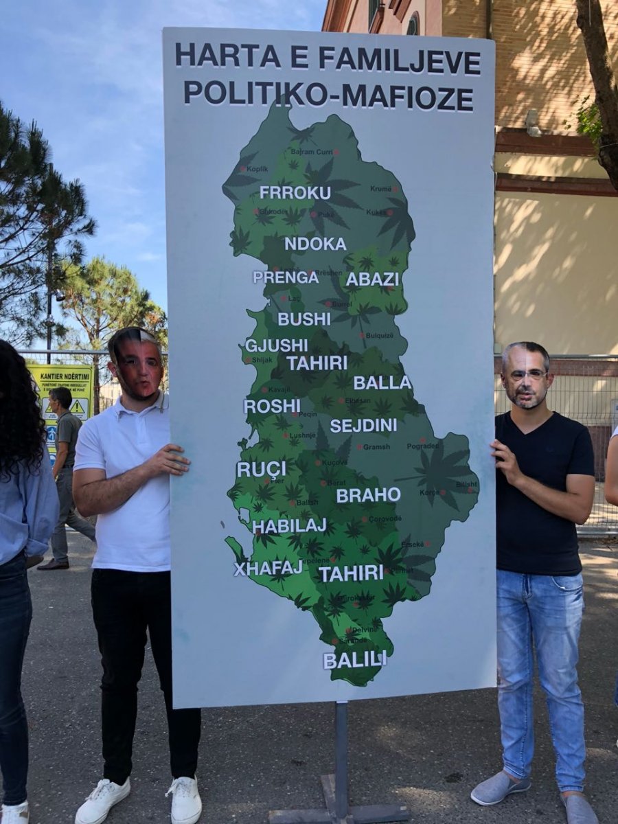 Të rinjtë demokratë kanë shfaqur një tjetër simbol të protestës kundër qeverisë së Edi Ramës që mbështet trafikun e drogës. Përballë resë tek Galeria Kombëtare ata kanë vendosur hartën e familjeve politiko-mafioze.