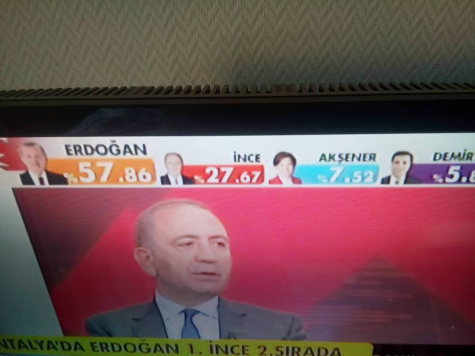 Sipas rezultateve të para të zgjedhjeve presidenciale të mbajtura sot në Turqi, presidenti aktual Recep Tayyip Erdogan kryeson me 57.8% të votave, sipas Reuters.