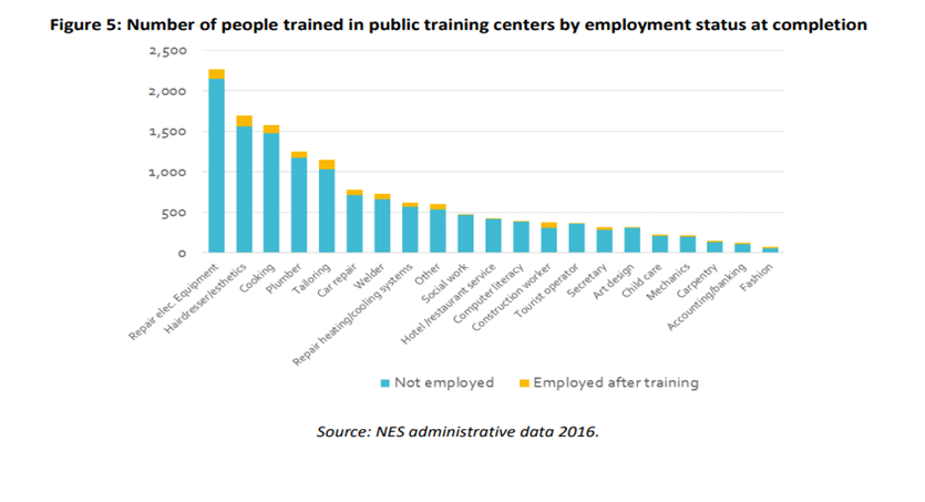 Në vitin 2016 janë trajnuar rreth 2300 përsona nga programet e shtetërore të nxitjes së punësimit si teknike të riparimit të automjtëve dhe pajisjeve elektrike, teksa janë punësuar më pak se 80 prej tyre.
